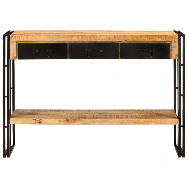 Dieser Konsolentisch aus Holz in Antik-Stil strahlt einen industriellen Stil aus und ist eine einzigartige Ergänzung zu deiner Einrichtung. Massives Mangoholz: Massives Mangoholz ist ein dichtes und robustes Hartholz, das auf seiner Oberfläche schöne braune oder goldene Streifen und Konturen aufweist.Viel Stauraum: Der Tisch verfügt über 3 Schubladen und 1 Ablage, die reichlich Platz für Kleinigkeiten wie Schlüssel, Notizblöcke und mehr bieten.Robuste Beine: Die Eisenbeine verleihen dem Flurtisch Robustheit und Stabilität und unterstreichen seinen industriellen Stil. Achtung:Um das Umkippen zu verhindern, muss dieses Produkt mit der mitgelieferten Wandhalterung gesichert werden. Hinweis:Die Farben und Maserungen variieren von Stück zu Stück und machen jedes Möbelstück zu einem Unikat. Die Lieferung erfolgt nach dem Zufallsprinzip und gewährleistet so die Exklusivität und Individualität deines Produkts.Jedes Produkt wird mit einer Montageanleitung in der Verpackung für eine einfache Montage geliefert.