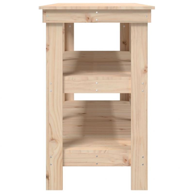 Diese Werkbank aus Holz ist eine praktische Bereicherung für deinen Wohnbereich. Massives Kiefernholz: Massives Kiefernholz ist ein wunderschönes Naturmaterial. Kiefernholz weist eine gerade Maserung auf und die Aststellen verleihen dem Material seine charakteristische, rustikale Optik.Viel Stauraum: Dieser Arbeitstisch mit Ablagen bietet viel Stauraum, um deine Gegenstände übersichtlich und griffbereit aufzubewahren.Robust: Der Holzrahmen sorgt für Robustheit und Stabilität. Achtung:Um ein Umkippen zu verhindern, muss dieses Produkt mit einer Wandhalterung (nicht im Lieferumfang enthalten) gesichert werden.Hinweis:Jedes Produkt wird mit einer Montageanleitung in der Verpackung für einen einfachen Zusammenbau geliefert.