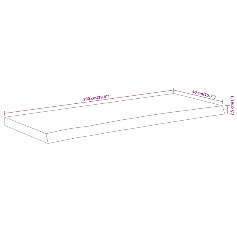 Tischplatte 100x40x2,5cm Rechteckig Massivholz Akazie Baumkante