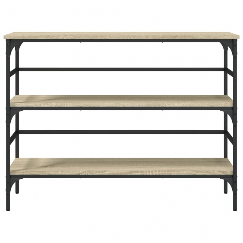 Dieser stilvolle Konsolentisch verleiht deinem Flur, Wohnzimmer oder Eingangsbereich einen Hauch von Eleganz. Langlebiges Material: Holzwerkstoff ist ein Material von außergewöhnlicher Qualität mit glatter Oberfläche, das sich durch Festigkeit, Stabilität und Feuchtigkeitsbeständigkeit auszeichnet. Aus Holzwerkstoff gefertigt, lässt sich der Sofatisch leicht reinigen.Reichlich Stauraum: Der Dielentisch verfügt über mehrere Ablagen und bietet reichlich Stauraum, um Zeitschriften, Bücher, Dekoartikel und andere Alltagssachen ordentlich und griffbereit aufzubewahren.Verstellbare Beine: Die verstellbaren Beine mit Kunststoffkappen verleihen dem Flurtisch zusätzliche Stabilität, selbst auf unebenem Untergrund.Metallrahmen: Der Metallrahmen verleiht deiner Einrichtung einen industriellen Stil und sorgt gleichzeitig für Haltbarkeit und Stabilität. Achtung:Um ein Umkippen zu vermeiden, sollte dieses Produkt mit der mitgelieferten Wandhalterung gesichert werden.