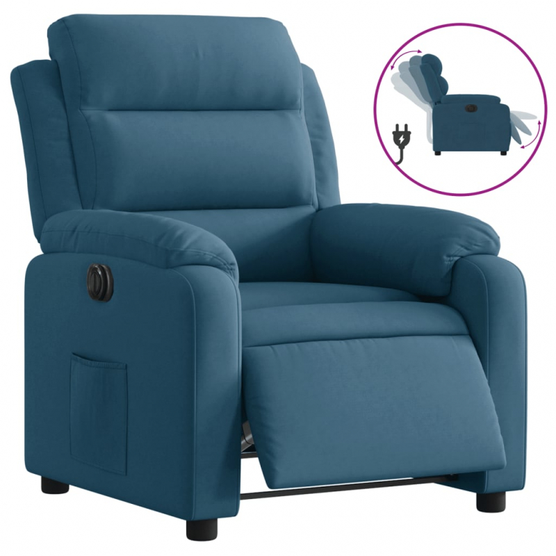 Lehne dich zurück und entspanne dich in diesem äußerst bequemen Fernsehsessel! Elektrische Liegefunktion: Dieser Relaxsessel ist mit einem Elektromotor ausgestattet, der Fußstütze und Rückenlehne durch einfaches Drücken des seitlichen Knopfes automatisch in jede gewünschte Position bringt. Diese Funktion ermöglicht eine maximale Neigung von 135 Grad. Darüber hinaus lässt sich die Rückenlehne auf Knopfdruck automatisch in die ursprünglichen Position zurückbringen.Bequemes Sitzerlebnis: Der dick gepolsterte Sitz, die Rückenlehne und die breiten, mit Samt bezogenen Armlehnen sorgen für ein behagliches und warmes Gefühl, sodass du dich beim Sitzen wie umarmt fühlst. Samt ist ein weicher und bequemer Stoff, der sich angenehm auf der Haut anfühlt.Praktische Seitentasche: Dieser Sessel verfügt über eine Seitentasche, in der du wichtige Sachen griffbereit aufbewahren kannst.Solider und stabiler Rahmen: Der Rahmen aus Holz und Metall sorgt für eine solide Struktur und hohe Stabilität. Dieser TV-Sessel ist bequem und langlebig.