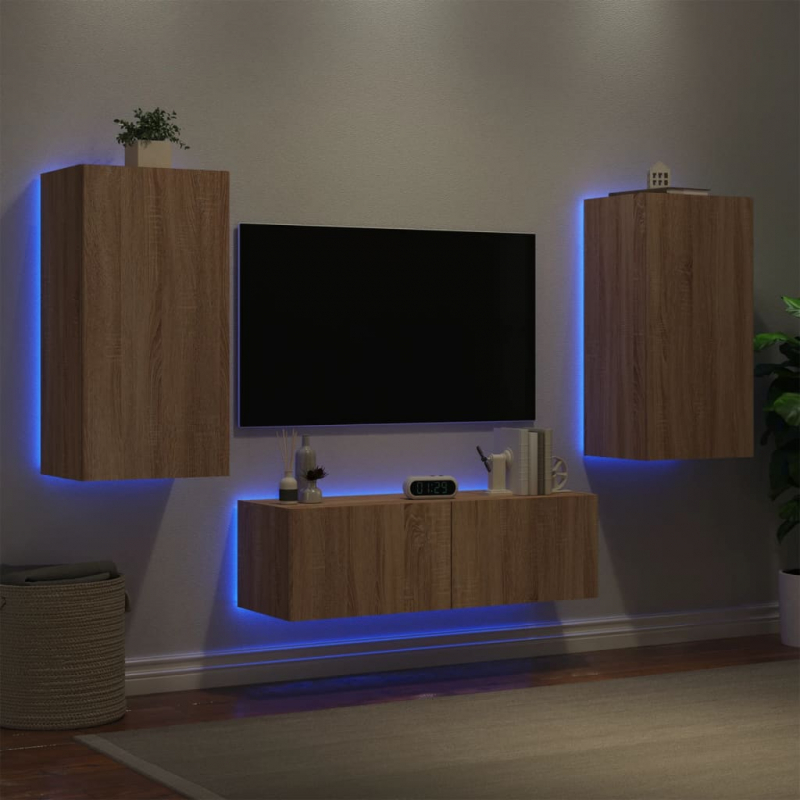 3-tlg. TV-Wohnwand mit LED-Leuchten Sonoma-Eiche
