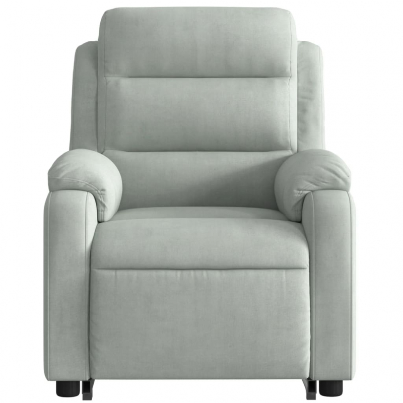 Lehne dich zurück und entspanne dich in diesem äußerst bequemen Massagesessel mit Aufstehhilfe! Elektrische Aufstehhilfe: Dieser Relaxsessel ist mit einem Elektromotor zum Anheben ausgestattet. Dank der Aufstehhilfe, die den gesamten Sessel nach oben bringt, kannst du ganz einfach auf Knopfdruck aufstehen, ohne deinen Rücken und deine Knie zu belasten.Manuelle Liegefunktion: Dieser Ruhesessel lässt sich mittels des Griffs an der rechten Seite verstellen. So kannst du das Fußteil und die Rückenlehne manuell in jede beliebige Position bringen, um höchsten Komfort zu genießen. Die Rückenlehne lässt sich max. 135 Grad nach hinten verstellen. Durch einfaches Ziehen lässt sie sich schnell wieder in die ursprüngliche Position bringen.Vibrationsfunktion: Dank der 6 Massagepunkte genießt du eine gezielte Massage. Zudem lassen sich verschiedene Massageprogramme über die mitgelieferte Handsteuerung auswählen. Die Massagefunktion wird über den USB-Anschluss betrieben, der eine zertifizierte 5-V-USB-Stromquelle erfordert (nicht im Lieferumfang enthalten).Bequemes Sitzerlebnis: Der dick gepolsterte Sitz, die Rückenlehne und die breiten, mit Samt bezogenen Armlehnen sorgen für ein behagliches und warmes Gefühl, sodass du dich beim Sitzen wie umarmt fühlst. Samt ist ein weicher und bequemer Stoff, der sich angenehm auf der Haut anfühlt.Praktische Seitentasche: Dieser Sessel verfügt über eine Seitentasche, in der du deine Fernbedienung oder andere wichtige Sachen griffbereit aufbewahren kannst.Solider und stabiler Rahmen: Der Rahmen aus Holz und Metall sorgt für eine solide Struktur und hohe Stabilität. Dieser TV-Sessel ist bequem und langlebig.