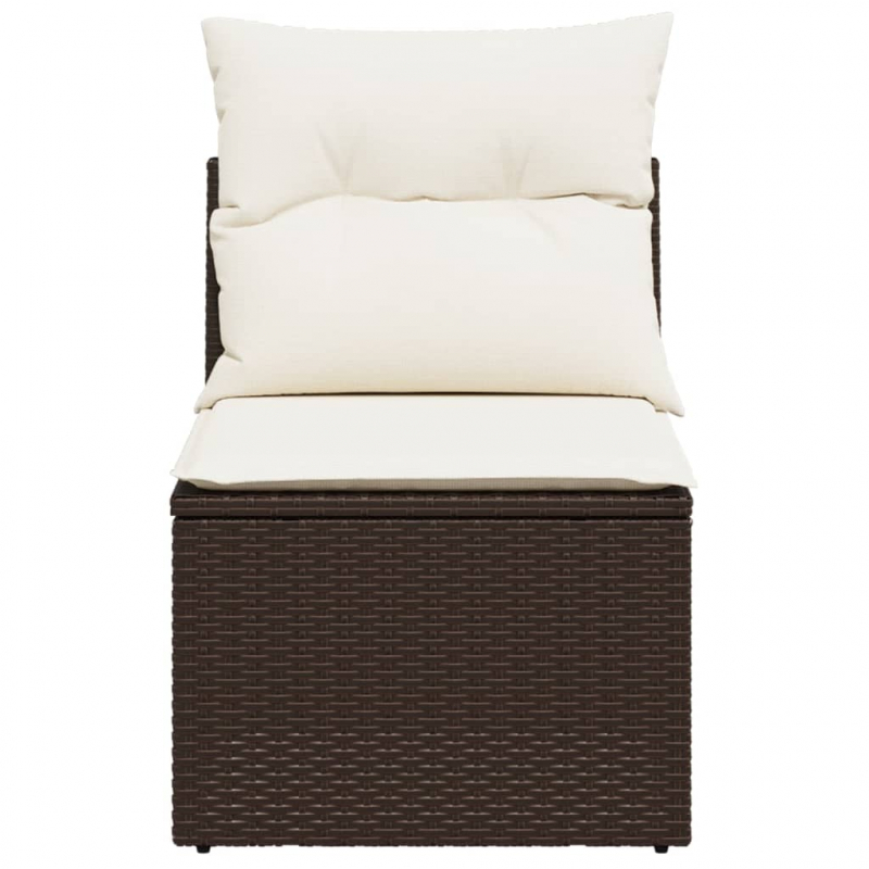 Entspanne dich und genieße die Natur auf diesem bequemen Gartenstuhl! PE-Rattan: PE-Rattan, auch als Poly Rattan bekannt, ist ein robustes, pflegeleichtes synthetisches Material, das die Optik von natürlichem Rattan aufweist. Es kennzeichnet sich durch ein geringes Eigengewicht und lässt sich einfach reinigen. Aufgrund seiner Haltbarkeit und Witterungsbeständigkeit wird es häufig bei der Herstellung von Gartenmöbeln verwendet.Stauraum mit wasserfestem Beutel: Jedes Gartensofa verfügt über ein Staufach unter der Sitzfläche, das mit einem wasserfesten Beutel zur Aufbewahrung von Kissen, Spielzeug und anderen Gegenständen versehen ist. Die Kissen sind mit Bezügen versehen und lassen sich mit Klettverschlüssen fest und sicher am Sofa befestigen.Bequemes Sitzerlebnis: Dieser Gartensessel mit dick gepolsterten Kissen bietet ein angenehmes Sitzgefühl.Abnehmbarer und waschbarer Bezug: Das Sitzkissen verfügt über einen abnehmbaren Bezug, der sich ganz einfach waschen und pflegen lässt.Robuster und stabiler Rahmen: Dank des pulverbeschichteten Stahlrahmens ist das Outdoor-Möbel robust, stabil und für den täglichen Einsatz im Außenbereich geeignet.Modulares Design: Dank des modularen Designs lassen sich diese Gartenmöbel völlig flexibel und einfach umstellen, um deinen Außenbereich ganz individuell zu gestalten. Gut zu wissen:Wir empfehlen dir, deine Gartenmöbel mit einer wasserdichten Hülle zu schützen, um lange Zeit eine ansprechende Optik aufzuweisen.