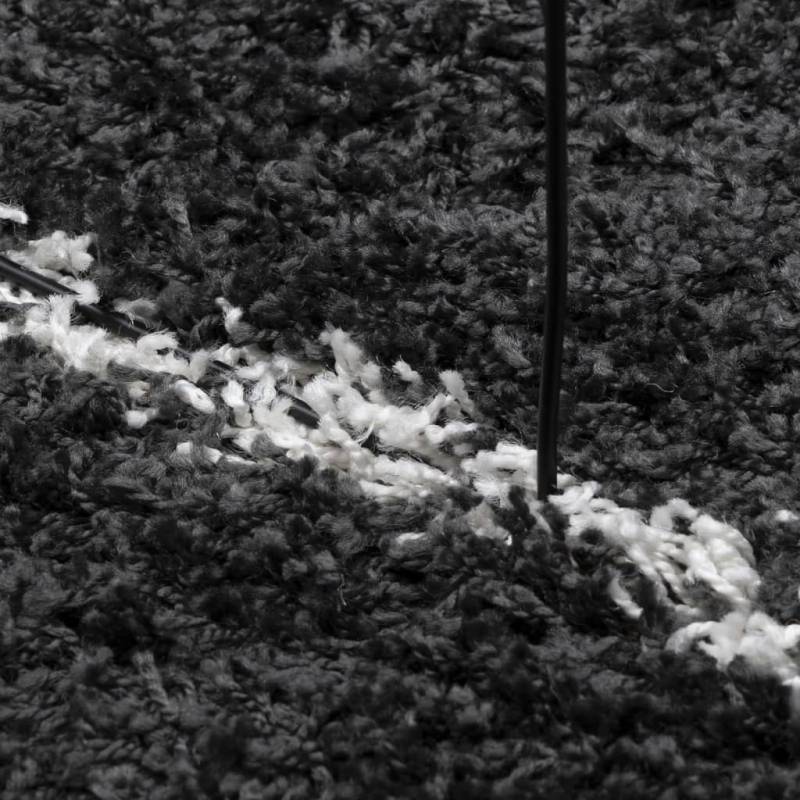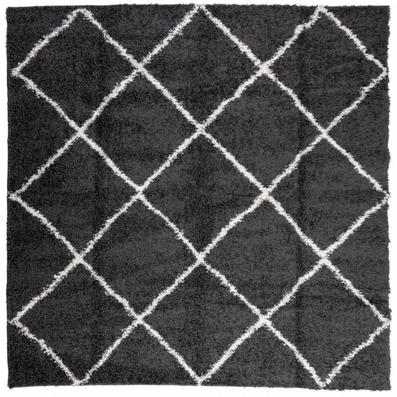 Teppich Shaggy Hochflor Modern Schwarz und Creme 120x120 cm