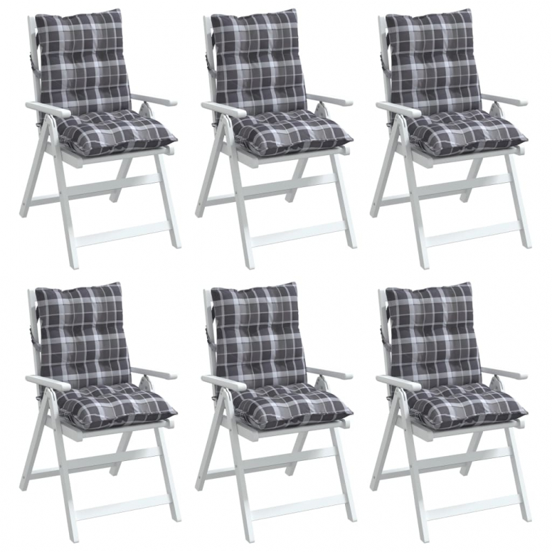 Niedriglehner-Auflagen 6 Stk. Grau Karomuster Oxford-Gewebe