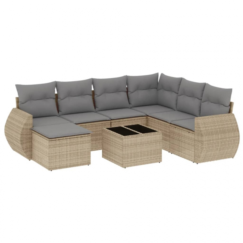 8-tlg. Garten-Sofagarnitur mit Kissen Beige Poly Rattan