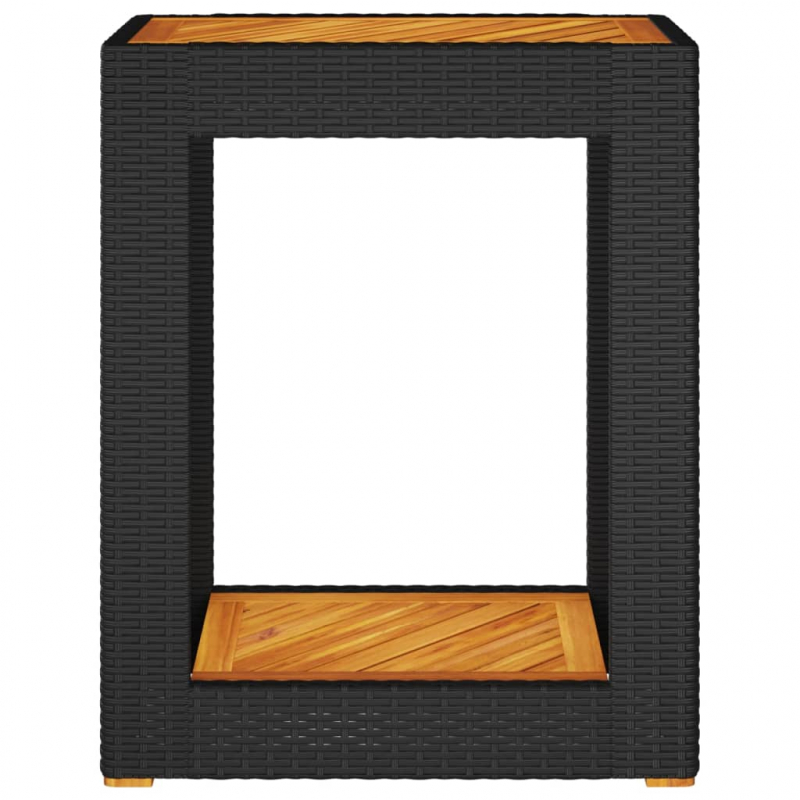 Garten-Beistelltisch mit Holzplatte Schwarz Poly Rattan