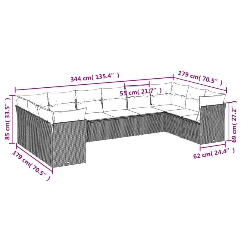 10-tlg. Garten-Sofagarnitur mit Kissen Schwarz Poly Rattan