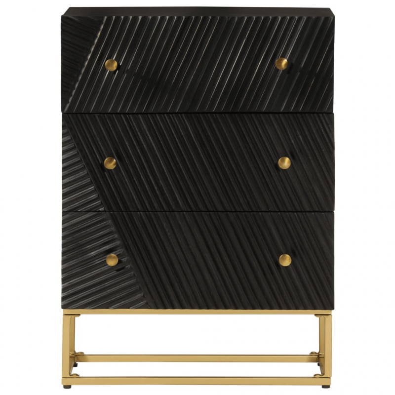 Mit ihrem zeitlosen Design ist diese Kommode aus Holz eine hervorragende Bereicherung für dein Zuhause. Massives Mangholz: Massives Mangoholz ist ein robustes, tropisches Hartholz, aus dem sich robuste Möbel herstellen lassen. Seine optisch ansprechende Holzmaserung macht jedes Möbelstück zu einem Unikat. Der Schrank ist aus massivem Mangoholz gefertigt und daher langlebig und stabil. Reichlich Stauraum: Der Beistellschrank bietet praktischen Stauraum, um verschiedene Sachen ordentlich und griffbereit aufzubewahren. Stabile Oberplatte: Die Oberplatte eignet sich perfekt, um Dekoartikel, Bilderrahmen und Topfpflanzen zur Schau zu stellen. Starke Beine: Die Eisenbeine tragen zur Robustheit und Stabilität der Nachtkommode bei. Achtung:Um ein Umkippen zu vermeiden, sollte dieses Produkt mit der mitgelieferten Wandhalterung gesichert werden.