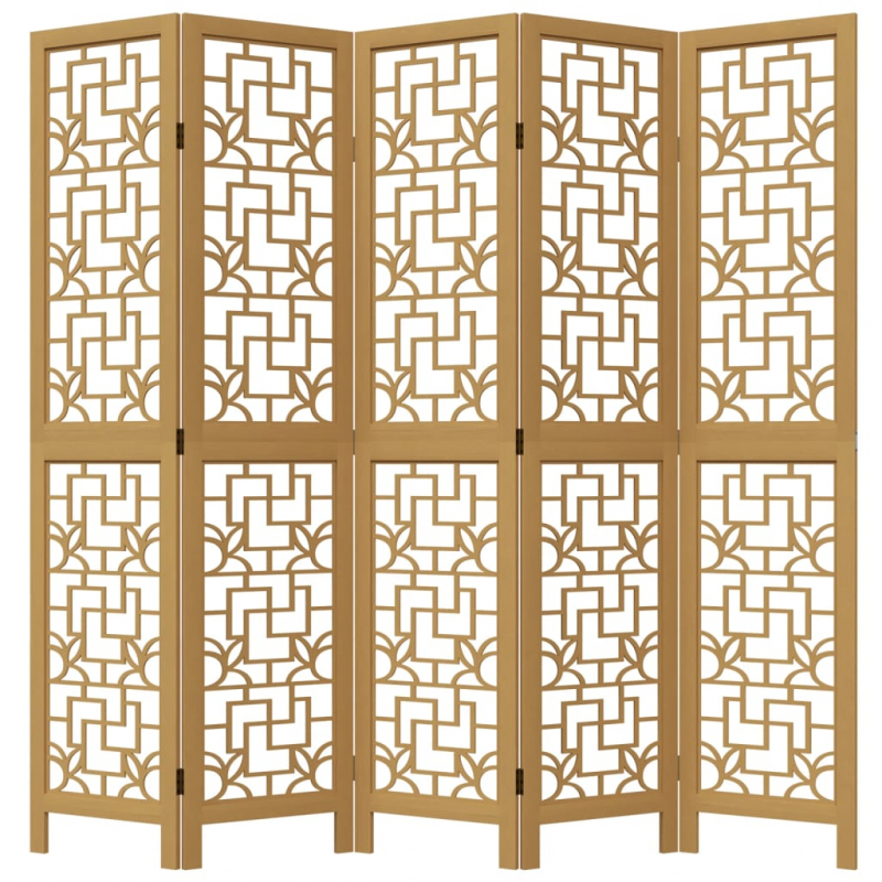5-tlg. Raumteiler Braun Massivholz Paulownia