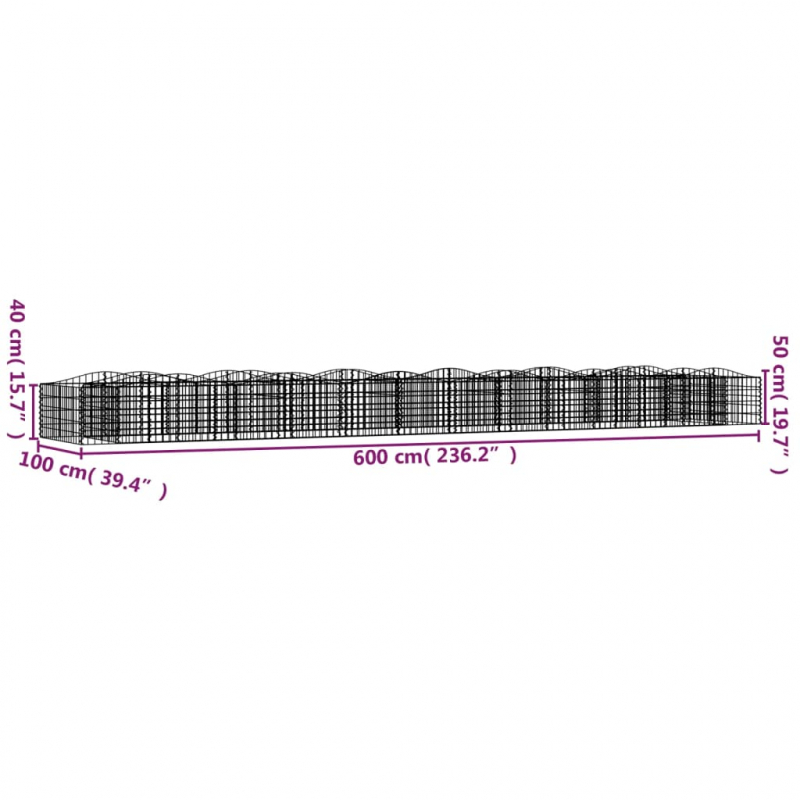 Gabionen-Hochbeet mit Hochbogen 600x100x50 cm Verzinktes Eisen