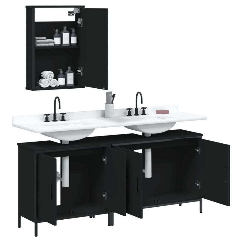 Dieses praktische Badmöbel-Set mit geräumigem Stauraum ist eine hervorragende Ergänzung für dein Badezimmer und verleiht ihm ein aufgeräumtes und eindrucksvolles Aussehen! Langlebiges Material: Der Holzwerkstoff ist von außergewöhnlicher Qualität mit glatter Oberfläche und zeichnet sich außerdem durch Festigkeit, Stabilität und Widerstandsfähigkeit gegen Feuchtigkeit aus. Viel Stauraum: Der Badezimmerschrank bietet verschiedene Aufbewahrungsmöglichkeiten und viel Platz für die Aufbewahrung verschiedener Sachen in deinem Badezimmer. Platzsparendes Design: Der Badezimmer-Spiegelschrank lässt sich an der Wand befestigen, was Bodenfläche spart. Die Badschrank-Oberplatte bietet den idealen Platz für das Waschbecken. Dieser Waschbeckenunterschrank stellt außerdem viel Stauraum zur Verfügung. Klares Spiegelbild: Die Spiegelfläche aus Glas bietet eine feine und unverzerrte Spiegelung, sodass sie sich zum Schminken, Rasieren oder Gesichtspflege eignet. Achtung:Um ein Umkippen zu vermeiden, sollte dieses Produkt mit der mitgelieferten Wandhalterung gesichert werden. Gut zu wissen:Schrauben und Dübel für die Montage an der Wand sind nicht enthalten. Passendes Montagezubehör muss separat gekauft werden. Wenn du dir bezüglich der Montage nicht sicher bist, wende dich bitte an einen Fachmann. Bitte lies und befolge jeden Schritt in der Anleitung.