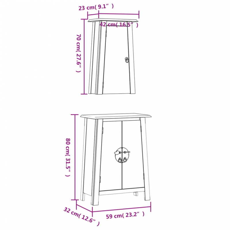 2-tlg. Badmöbel-Set Massivholz Kiefer