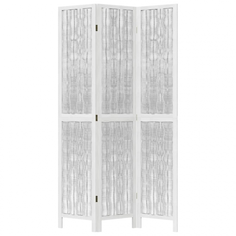 3-tlg. Raumteiler Weiß Massivholz Paulownia