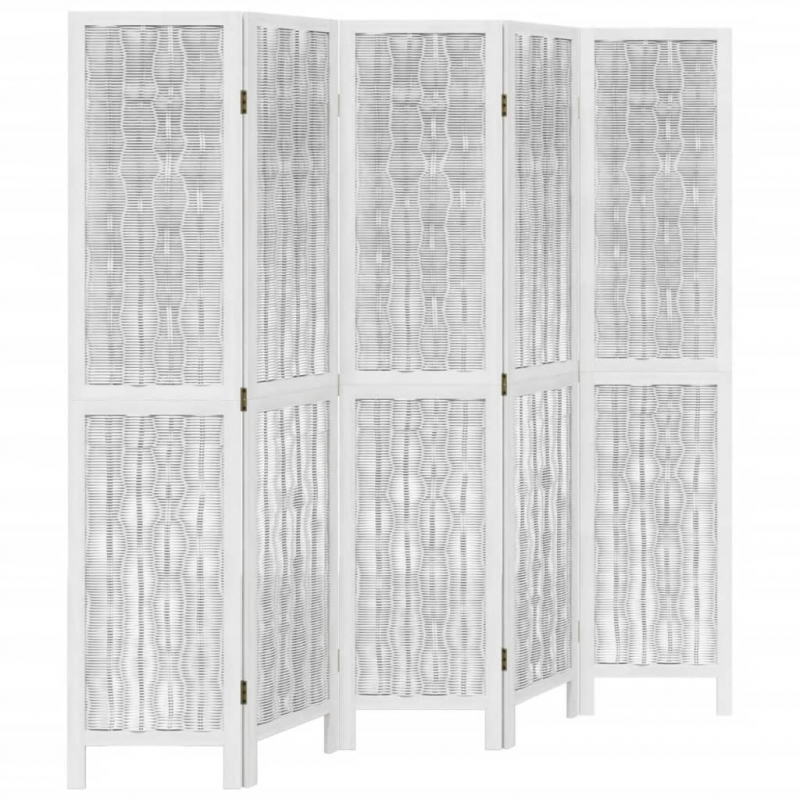 5-tlg. Raumteiler Weiß Massivholz Paulownia