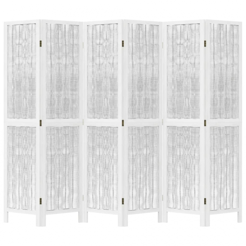 6-tlg. Raumteiler Weiß Massivholz Paulownia