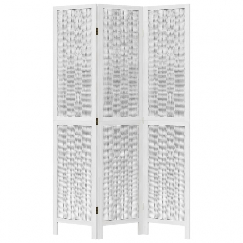 3-tlg. Raumteiler Weiß Massivholz Paulownia