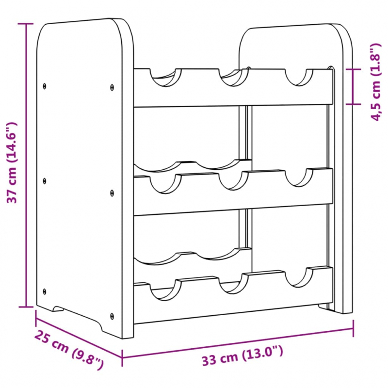 In diesem Weinregal aus Holz können Sie Ihre Weine stilvoll aufbewahren, altern lassen und zur Schau stellen! Massives Kiefernholz: Dieses Weinregal ist aus Kiefern-Massivholz gefertigt. Massives Kiefernholz ist ein wunderschönes Naturmaterial. Kiefernholz weist eine gerade Maserung auf und die Aststellen verleihen dem Holz seine charakteristische, rustikale Optik.Reichlich Stauraum: Das Weinregal besitzt 3 Ebenen, auf denen bis zu 9 Flaschen Wein Platz finden. Jede Ebene kann 3 Flaschen aufnehmen.Wellen-Design: Das Wellen-Design ermöglicht dem Korken feucht zu bleiben, was den Wein länger haltbar macht.Breite Anwendungen: Das Weinregal findet leicht Platz in der Küche, Speisekammer, einem Schrank, dem Esszimmer, Keller, auf der Arbeitsplatte, in der Bar usw.