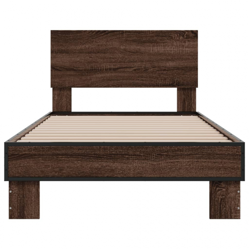 Bettgestell Braun Eichen-Optik 75x190 cm Holzwerkstoff Metall