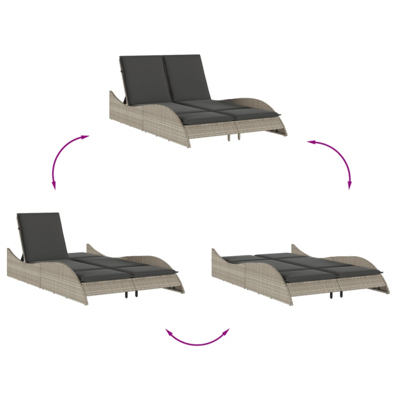 Sonnenliege mit Auflagen Hellgrau 114x205x73 cm Poly Rattan