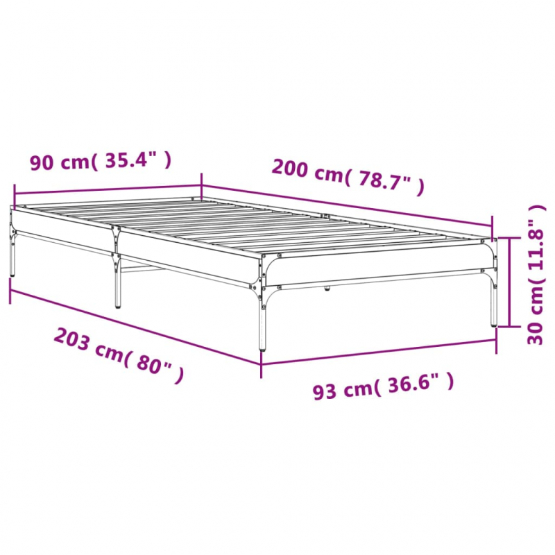 Bettgestell Braun Eichen-Optik 90x200 cm Holzwerkstoff Metall