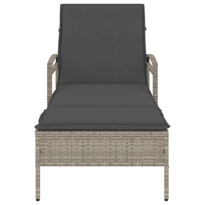 Sonnenliege mit Auflage Hellgrau 63x200x81 cm Poly Rattan