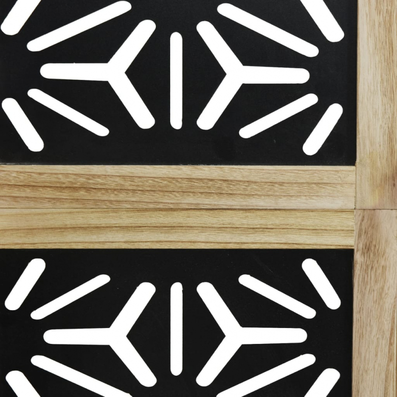 Verleihe deinem Wohnraum eine auffällige dekorative Note mit diesem bezaubernden Raumteiler. Langlebig und leicht zu reinigen: Der Sichtschutz ist aus Paulownia-Massivholz und Holzwerkstoff gefertigt, wodurch er pflegeleicht und strapazierfähig ist.Robuster Rahmen: Der Rahmen aus massivem Paulownia-Holz sorgt für Robustheit und Stabilität. Paulownia-Massivholz ist ein wunderschönes Naturmaterial. Paulowniaholz ist widerstandsfähig gegen Schädlingsbefall und Verrottung.Flexibel und einfach faltbar: Die Paravent-Teile sind jeweils durch 3 Metallscharniere miteinander verbunden. Die oberen und unteren Paneele dieser spanischen Wand sind durch verborgene 2-in-1-Scharniere verbunden. Der Raumtrenner kann also leicht bis zu einem gewissen Grad zusammengeklappt werden; dadurch spart er bei Nichtgebrauch Platz.Vielseitig einsetzbar: Der Raumtrenner eignet sich hervorragend zur Schaffung von Privatsphäre im Schlafzimmer, Wohnzimmer, Büro und anderen Räumen. Du kannst das Paravent auch vor ein Fenster stellen, um starkes Sonnenlicht abzuschirmen.Attraktiver Look: Mit seinem geometrischen Muster verleiht diese faltbare Trennwand jedem Raum mehr Charakter. Achtung:Nur für den Innenbereich!