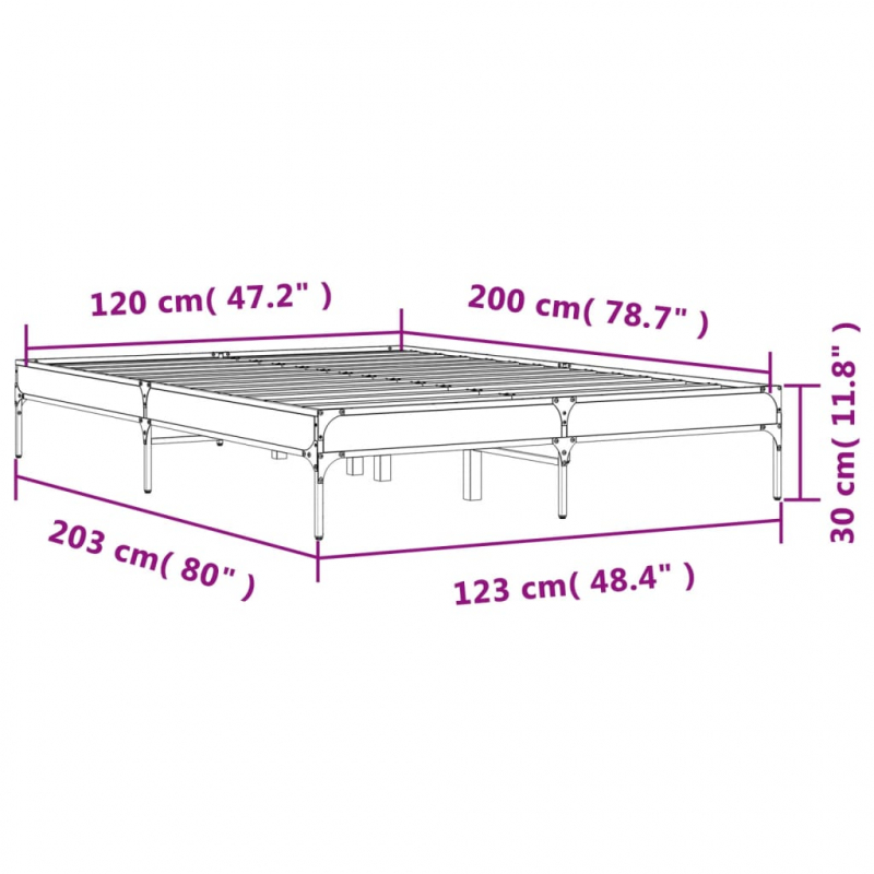 Bettgestell Grau Sonoma 120x200 cm Holzwerkstoff und Metall
