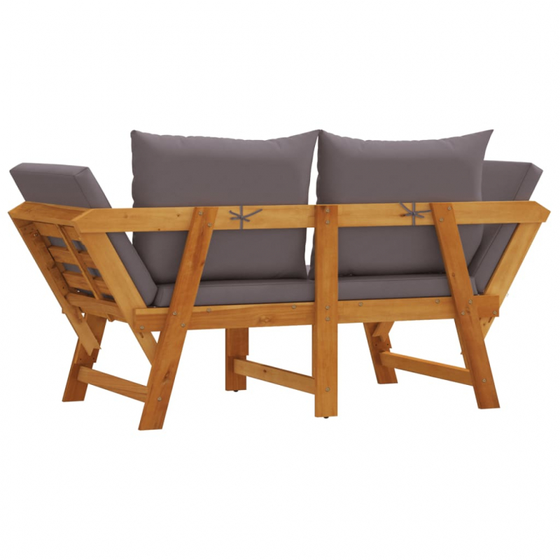 Diese 2-in-1 Gartenbank ist die perfekte Wahl, um dich an einem sonnigen Tag auf deiner Veranda zu entspannen oder dich abends hinzulegen, um die Sterne zu beobachten. Robust und stabil: Massives Akazienholz ist für seine Festigkeit und Haltbarkeit bekannt. Seine vielfältige Farbe und seine einzigartige Maserung verleihen ihm eine attraktive Optik. Dank seiner ausgezeichneten Stabilität und Witterungsbeständigkeit eignet es sich ideal für die Herstellung von Innen- und Außenmöbeln.2-in-1-Design: Die Gartenbank lässt sich dank der verstellbaren Seiten schnell und einfach in ein Tagesbett verwandeln.Bequemes Sitzerlebnis: Dieser Gartensessel mit dick gepolsterten Kissen bietet ein angenehmes Sitzgefühl.Gute Belüftung und Verhinderung von Ansammlungen: Das Latten-Design sorgt für eine optimale Luftzirkulation und verhindert effektiv, dass sich Wasser ansammelt, wodurch die Sitzfläche stets bequem trocken bleibt. Gut zu wissen:Wir empfehlen dir, deine Gartenmöbel mit einer wasserdichten Hülle zu schützen, um lange Zeit eine ansprechende Optik aufzuweisen.