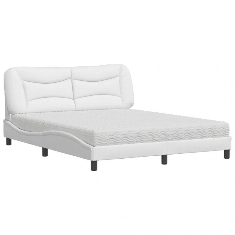 In diesem Bett mit Matratze genießt du einen besseren, erholsameren Schlaf! Es ist eine einladende Ergänzung zu jedem Schlafzimmer. Langlebiges Kunstleder: Hochwertiges Kunstleder ist ein äußerst langlebiges Material. Es ist schmutzabweisend und lässt sich mit einem feuchten Tuch einfach reinigen. Durch die glatte Oberfläche weist es die Schönheit von Echtleder und einen luxuriösen Look auf.Sperrholzlatten: Die Sperrholzlatten sorgen für eine gute Gewichtsverteilung und auch dafür, dass die Matratze bei jeder Bewegung deines Körpers während des Schlafes an Ort und Stelle bleibt.Hervorragende Unterstützung: Das Bett-Kopfteil bietet dir eine hervorragende Unterstützung, während du im Bett sitzt, um zu lesen oder fernzusehen.Schaumstoffmatratze: Die Bettmatratze besteht aus 3 Schichten und ist mit 22D PU-Schaumstoff gefüllt, um optimalen Komfort zu bieten. Sie lindert Müdigkeit und fördert die Blutzirkulation, um für vollständige Entspannung und einen guten Schlaf nach einem langen Tag zu sorgen. Zudem besitzt die Matratze die Härtegrade H2 und H3, sodass du durch einfaches Wenden der Matratze den Härtegrad wählen kannst, der deinen Anforderungen bestens entspricht.Wellenförmiges Seitendesign: Das stilvolle und raffinierte Design in Wellenform verleiht deiner Einrichtung eine moderne und elegante Note und macht das Bettgestell zum Mittelpunkt deines Schlafzimmers.