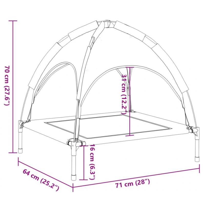 Diese Hundeliege mit Dach bietet deinem pelzigen Freund einen komfortablen und praktischen Schlafplatz. Langlebiges und atmungsaktives Material: Aus Oxford-Gewebe und Textilene gefertigt, ist das erhöhte Hundebett auf eine lange Lebensdauer ausgelegt und für den täglichen Einsatz im Außenbereich geeignet.Robustes und stabiles Gestell: Das Gestell aus pulverbeschichtetem Stahl verleiht der Hundeliege Robustheit und Stabilität. Zur hohen Stabilität tragen auch die vier rutschfesten Beine mit Gummikappen bei.Abnehmbares Dach: Das Hundebett ist mit einem abnehmbaren Dach versehen, das bei Bedarf Schatten spendet und Schutz bietet.Erhöhtes Design: Die Hundeliege liegt nicht direkt auf dem Boden, um deinen Hund vor Verschmutzungen und Feuchtigkeit zu schützen und ihm einen trockenen und angenehmen Schlafplatz zu bieten.Breite Anwendungen: Das Hundebett lässt sich sowohl im Innen- als auch im Außenbereich einsetzen. Er findet Platz in den eigenen vier Wänden, auf der Veranda, der Terrasse oder im Garten.