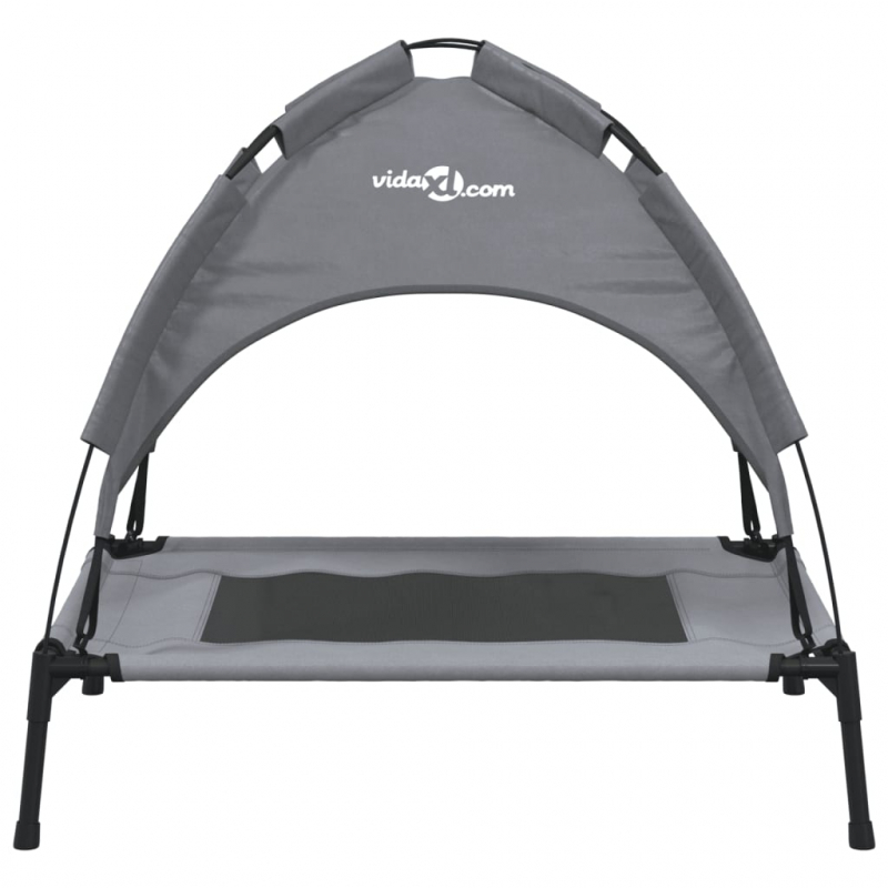 Diese Hundeliege mit Dach bietet deinem pelzigen Freund einen komfortablen und praktischen Schlafplatz. Langlebiges und atmungsaktives Material: Aus Oxford-Gewebe und Textilene gefertigt, ist das erhöhte Hundebett auf eine lange Lebensdauer ausgelegt und für den täglichen Einsatz im Außenbereich geeignet.Robustes und stabiles Gestell: Das Gestell aus pulverbeschichtetem Stahl verleiht der Hundeliege Robustheit und Stabilität. Zur hohen Stabilität tragen auch die vier rutschfesten Beine mit Gummikappen bei.Abnehmbares Dach: Das Hundebett ist mit einem abnehmbaren Dach versehen, das bei Bedarf Schatten spendet und Schutz bietet.Erhöhtes Design: Die Hundeliege liegt nicht direkt auf dem Boden, um deinen Hund vor Verschmutzungen und Feuchtigkeit zu schützen und ihm einen trockenen und angenehmen Schlafplatz zu bieten.Breite Anwendungen: Das Hundebett lässt sich sowohl im Innen- als auch im Außenbereich einsetzen. Er findet Platz in den eigenen vier Wänden, auf der Veranda, der Terrasse oder im Garten.