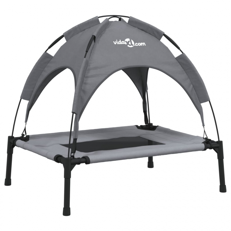 Diese Hundeliege mit Dach bietet deinem pelzigen Freund einen komfortablen und praktischen Schlafplatz. Langlebiges und atmungsaktives Material: Aus Oxford-Gewebe und Textilene gefertigt, ist das erhöhte Hundebett auf eine lange Lebensdauer ausgelegt und für den täglichen Einsatz im Außenbereich geeignet.Robustes und stabiles Gestell: Das Gestell aus pulverbeschichtetem Stahl verleiht der Hundeliege Robustheit und Stabilität. Zur hohen Stabilität tragen auch die vier rutschfesten Beine mit Gummikappen bei.Abnehmbares Dach: Das Hundebett ist mit einem abnehmbaren Dach versehen, das bei Bedarf Schatten spendet und Schutz bietet.Erhöhtes Design: Die Hundeliege liegt nicht direkt auf dem Boden, um deinen Hund vor Verschmutzungen und Feuchtigkeit zu schützen und ihm einen trockenen und angenehmen Schlafplatz zu bieten.Breite Anwendungen: Das Hundebett lässt sich sowohl im Innen- als auch im Außenbereich einsetzen. Er findet Platz in den eigenen vier Wänden, auf der Veranda, der Terrasse oder im Garten.