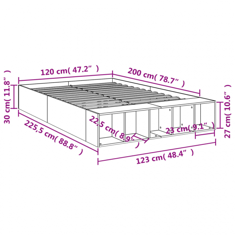 Bettgestell Grau Sonoma 120x200 cm Holzwerkstoff