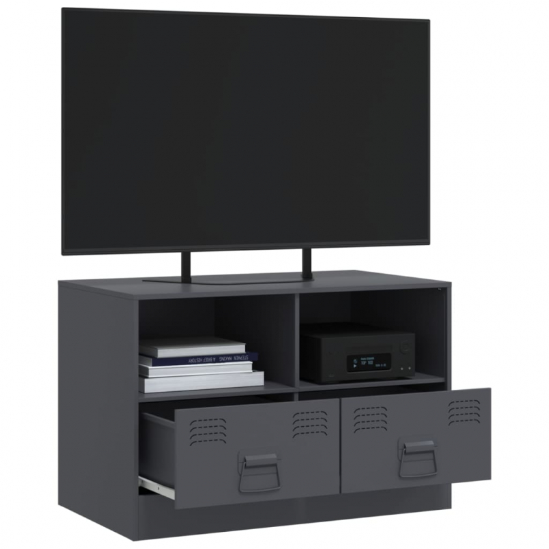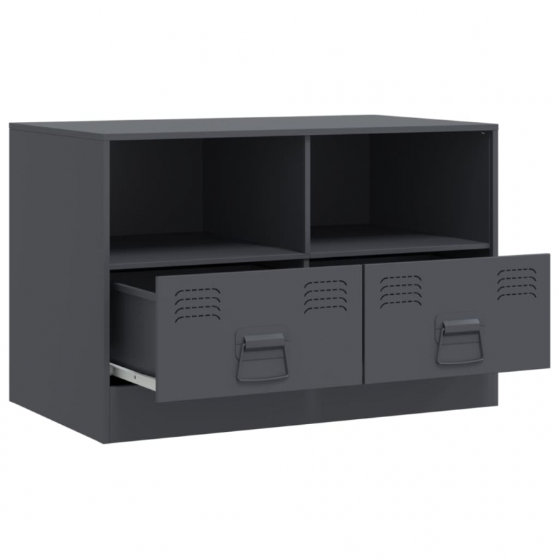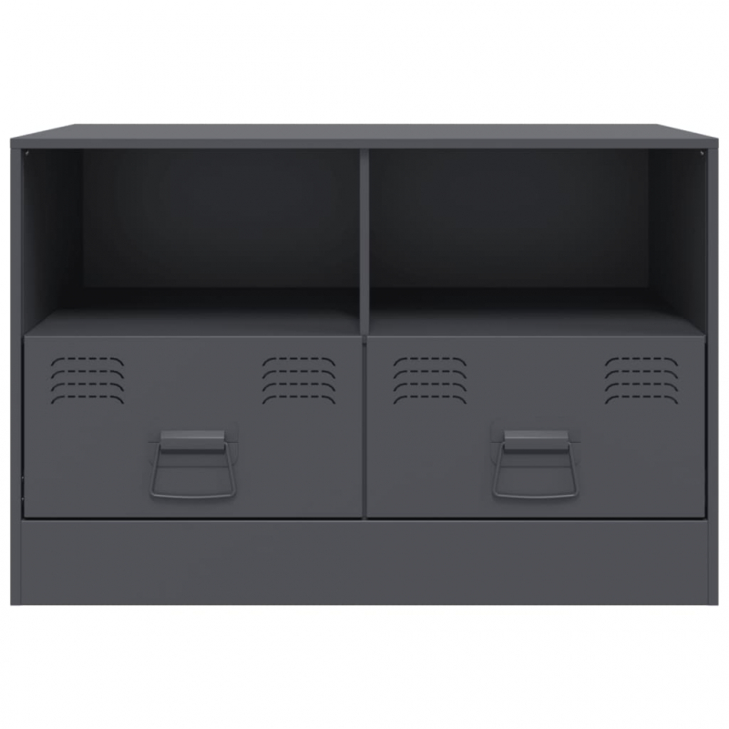Dieser robuste TV-Schrank wird mit seinem trendigen und dennoch praktischen Design sicherlich der Mittelpunkt Ihres Wohnzimmers werden. Stabiles Material: Das Gestell des TV-Schranks besteht aus kaltgewalztem Stahl. Kaltgewalzter Stahl ist eine Art kohlenstoffarmer Stahl, der im „Kaltwalzverfahren“ hergestellt und bei nahezu normalen Raumtemperaturen verarbeitet wird. Kaltgewalzter Stahl besitzt eine glattere Oberfläche, eine höhere Festigkeit und lässt sich präziser verarbeiten.Reichlich Stauraum: Dieser Schrank bietet praktischen Stauraum, um deine Zeitschriften, Bücher, Fernbedienungen und andere kleine Gegenstände gut geordnet und in Reichweite aufzubewahren.Pflegeleicht: Der Tisch lässt sich mit einem feuchten Tuch leicht reinigen und erfordert wenig Pflege.Praktischer Griff: Der TV-Schrank ist mit 2 Griffen ausgestattet, die das Öffnen und Schließen des Schranks erleichtern und gleichzeitig zu seiner ansprechenden Optik beitragen.