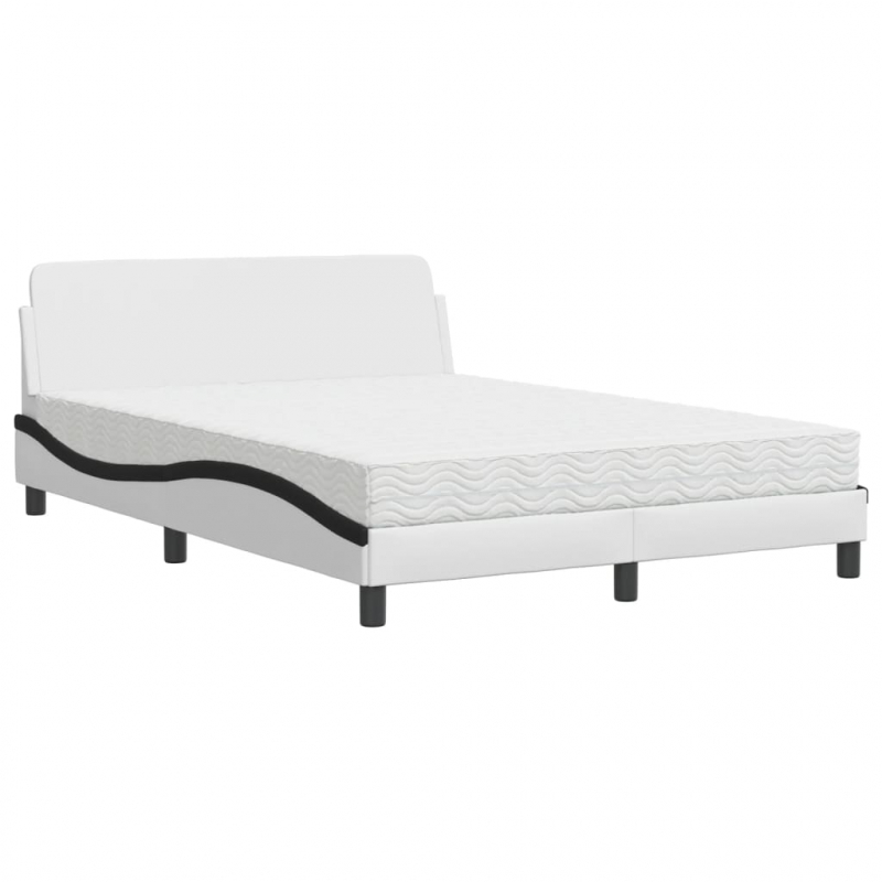 Bett mit Matratze Weiß und Schwarz 120x200 cm Kunstleder