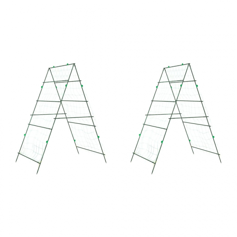 Dieses Ranknetz mit A-Rahmen ist die ideale Wahl für die meisten Kletterpflanzen in deinem Garten. Langlebig und stabil: Das Ranknetz besteht aus Stahl mit einer PE-Beschichtung, wodurch es robust, korrosionsbeständig und langlebig ist. Darüber hinaus verfügt die Rankhilfe über ein A-Rahmen-Design, das maximale Stabilität für deine Kletterpflanzen gewährleistet.Praktisches Design: Das Ranknetz verhindert, dass Pflanzen und Früchte auf den Boden fallen und erleichtert so das Ernten. Zusätzlich enthält es Clips, mit denen du deine Pflanzen sichern kannst.Einfach zu verwenden: Die Breite des A-förmigen Stützrohrs kann von dir bis zu einem gewissen Grad an deine Bedürfnisse angepasst werden.Breite Anwendungen: Diese Rankhilfe mit verdickten Metallrohren eignet sich für eine Vielzahl von Kletterpflanzen, darunter Trauben, Erbsen, Gurken, Auberginen, Rosen und mehr. Sie wird dir helfen, einen schönen und produktiven Garten anzulegen.