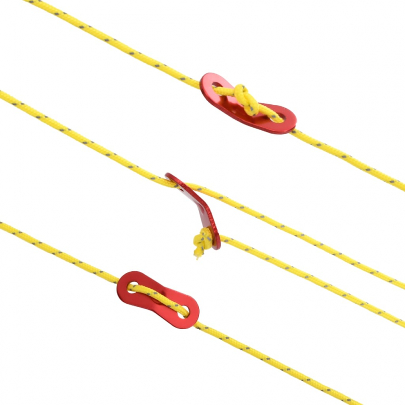 Dieses Abspannseil ist langlebig und flexibel und eignet sich daher ideal zum Festbinden oder Sichern deiner Ausrüstung, insbesondere des Zeltes auf dem Campingplatz. Langlebig: Aus Polypropylen gefertigt, ist diese Zeltspannleine auf eine lange Lebensdauer ausgelegt und besitzt eine hohe Zugfestigkeit. Zudem ist sie mit einem reflektierenden Streifen versehen, der nachts für mehr Sichtbarkeit sorgt und das Stolpern verhindert.Einfacher Einsatz: Die Zeltleine besitzt ein geringes Eigengewicht, lässt sich leicht zuschneiden und dadurch an deine Bedürfnisse anpassen. Dies erleichtert die Lagerung und bietet mehr Komfort auf Reisen.Praktisches Design: Die Seilspanner bestehen aus Aluminiumlegierung und sind mit je 2 Löchern versehen. Damit kannst du die Zeltschnur insbesondere bei Wind sichern und in der Länge verstellen. Dies erweist sich bei Aktivitäten im Freien als sehr praktisch.Vielseitig einsetzbar: Dieses Abspannseil eignet sich ideal zum Aufstellen von Zelten und Tarps auf dem Campingplatz. Sie lässt sich auch für andere Aktivitäten wie Wandern verwenden. Achtung:Dieses Abspannseil eignet sich nicht für Klettern oder Aufhängen. Bitte halte das Seil vom Feuer oder anderen heißen Gegenständen fern.