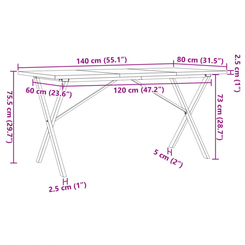 Esstisch X-Gestell 140x80x75,5 cm Massivholz Kiefer & Stahl