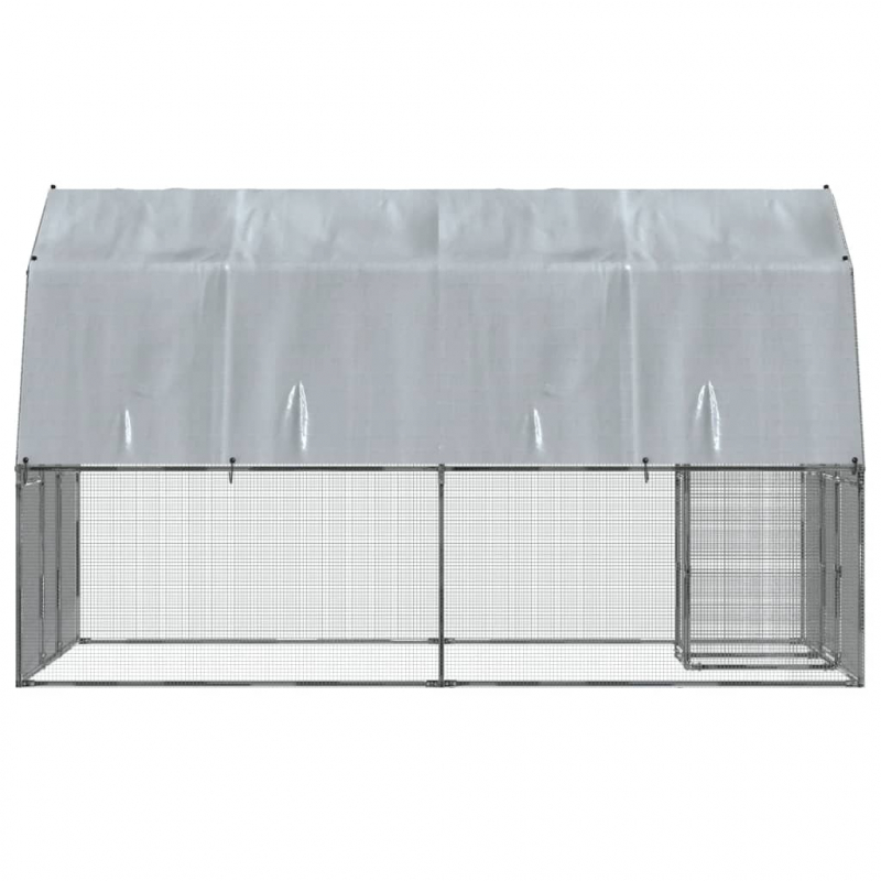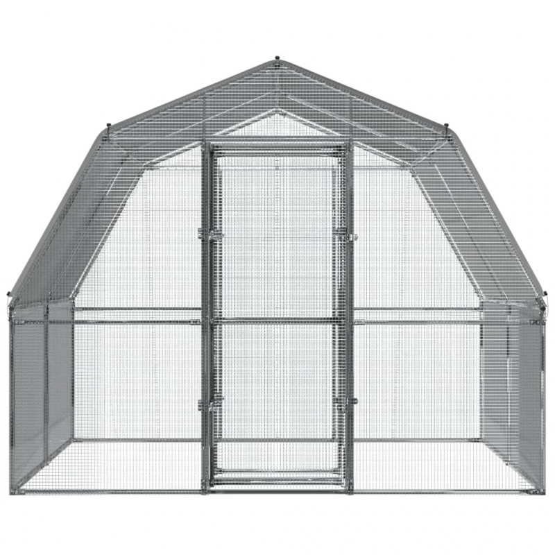 Hühnergehege mit Dach und Tür Silbern Verzinkter Stahl
