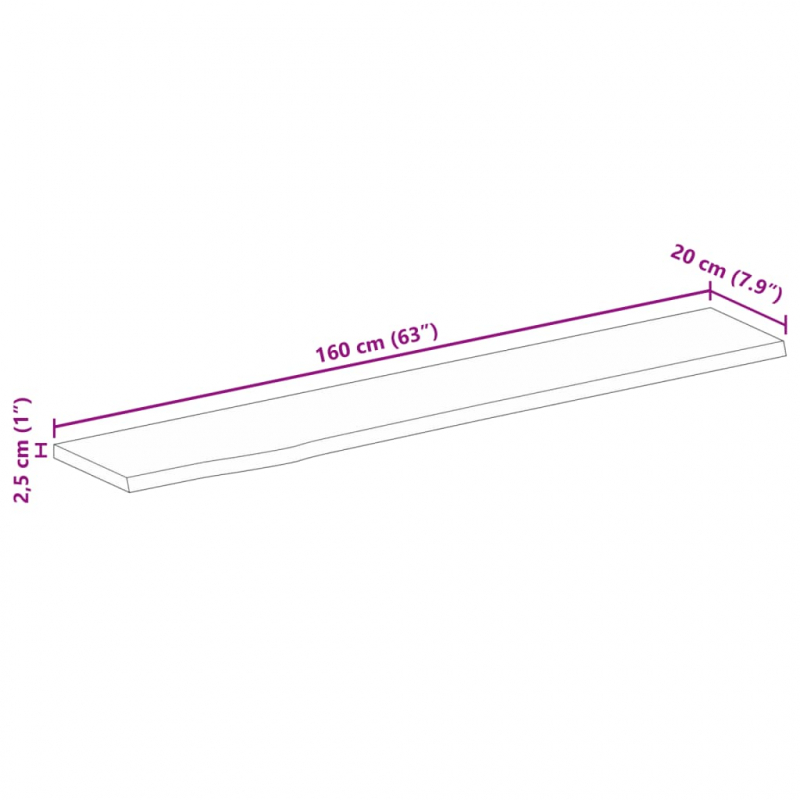 Tischplatte 160x20x2,5 cm Baumkante Massivholz Raues Mangoholz