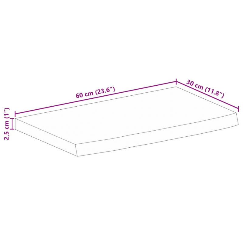 Tischplatte 60x30x2,5 cm Baumkante Massivholz Raues Mangoholz