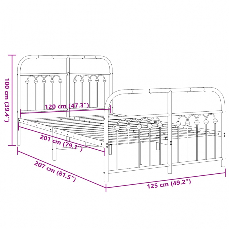 • Gesamtabmessungen des Bettes: 207 x 125 x 100 cm (L x B x H)