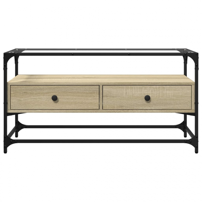 Dieser robuste TV-Schrank wird mit seinem trendigen und dennoch praktischen Design sicherlich der Mittelpunkt Ihres Wohnzimmers werden. Metallrahmen: Der Metallrahmen verleiht deiner Einrichtung einen industriellen Stil und sorgt gleichzeitig für Haltbarkeit und Stabilität.Viel Stauraum: Der TV-Ständer bietet reichlich Platz, um verschiedene Alltagssachen gut organisiert und in Reichweite aufzubewahren.Tischplatte aus Glas: Die Tischplatte bietet einen sichtbaren und großzügigen Platz für Snacks, Getränke, Vasen, Obstschalen oder andere Dekoartikel.Praktisches Design: Dieser Beistellschrank verfügt über zwei Schubladen, um verschiedene Sachen sauber aufzubewahren. Achtung:Um ein Umkippen zu vermeiden, sollte dieses Produkt mit der mitgelieferten Wandhalterung gesichert werden.