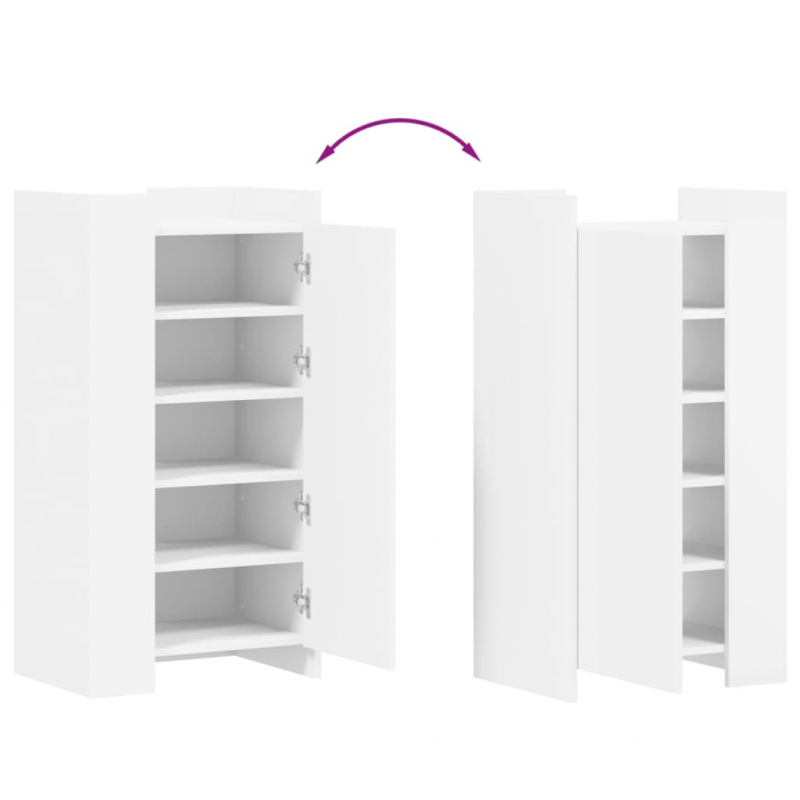 Mit diesem eleganten Schuhschrank verhinderst du, dass deine Schuhe überall herumliegen und Unordnung entsteht. Mit diesem Möbelstück schaffst eine aufgeräumte Umgebung in deinem Zuhause! Langlebiges Material: Holzwerkstoff ist ein Material von außergewöhnlicher Qualität mit glatter Oberfläche, das sich durch Festigkeit, Stabilität und Feuchtigkeitsbeständigkeit auszeichnet.Ausreichend Stauraum: Dieser Schuhschrank ist mit Fächern ausgestattet, damit du deine Schuhe und andere Sachen gut organisiert aufbewahren kannst.Pflegeleicht: Das Schuhregal lässt sich leicht mit einem feuchten Tuch reinigen und benötigt wenig Pflege.Zwei Montagemöglichkeiten: Du kannst die beiden Eckteile auf derselben oder auf gegenüberliegenden Seiten anbringen, indem du die Leitbleche vorne bzw. eine vorne und die andere hinten positionierst. Achtung:Um ein Umkippen zu vermeiden, sollte dieses Produkt mit der mitgelieferten Wandhalterung gesichert werden.