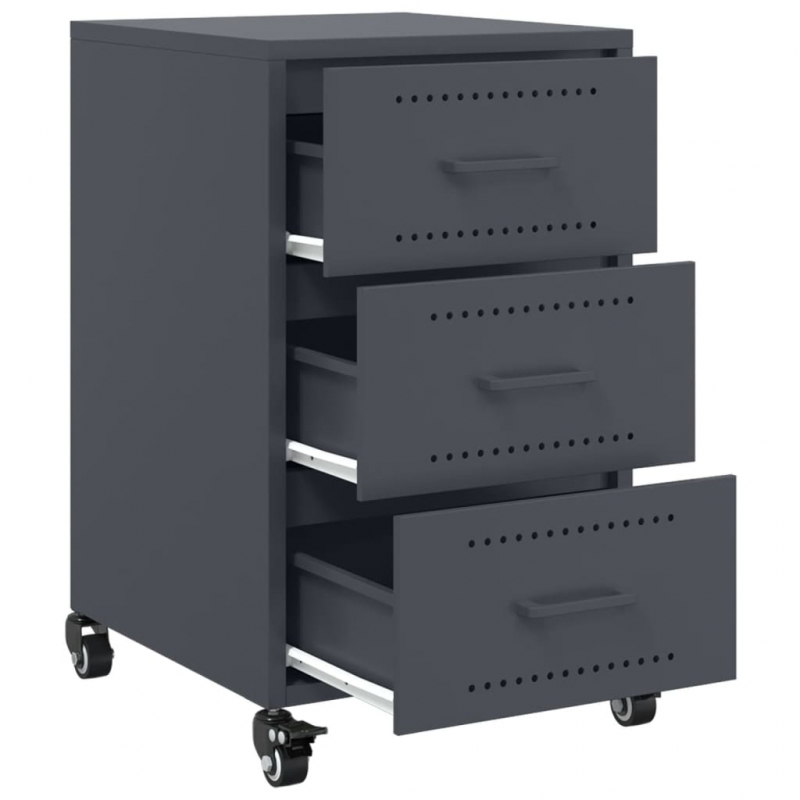 Mit seinem stilvollen Design ist dieser Nachttisch eine zeitlose Ergänzung zu deiner Inneneinrichtung. Stabiles Material: Das Gestell des Nachttisches besteht aus kaltgewalztem Stahl. Kaltgewalzter Stahl ist eine Art kohlenstoffarmer Stahl, der im „Kaltwalzverfahren“ hergestellt und bei nahezu normalen Raumtemperaturen verarbeitet wird. Kaltgewalzter Stahl besitzt eine glattere Oberfläche, eine höhere Festigkeit und lässt sich präziser verarbeiten.Reichlich Stauraum: Dieser Schrank bietet praktischen Stauraum, um deine Zeitschriften, Bücher, Fernbedienungen und andere kleine Gegenstände gut geordnet und in Reichweite aufzubewahren.Pflegeleicht: Der Tisch lässt sich mit einem feuchten Tuch leicht reinigen und erfordert wenig Pflege.Einfaches Umstellen: Dieser Beistelltisch verfügt über 4 Rollen und lässt sich daher flexibel und mühelos umher verschieben.Praktischer Griff: Der Nachtschrank ist mit 3 Griffen ausgestattet, die das Öffnen und Schließen des Schranks erleichtern und gleichzeitig zu seiner ansprechenden Optik beitragen.