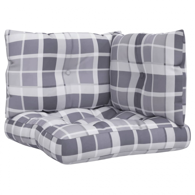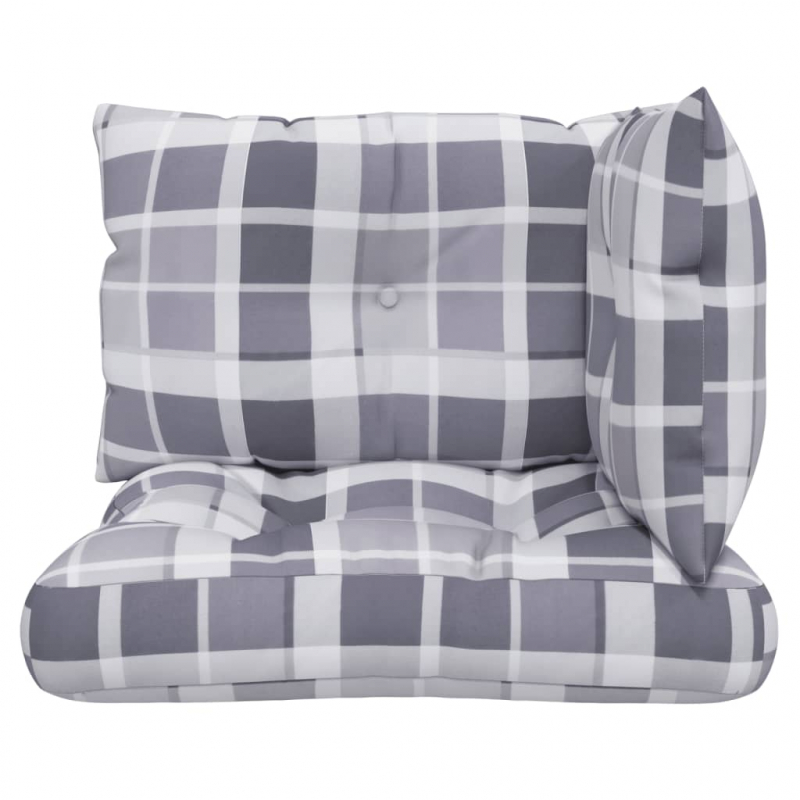 Palettenkissen 3-tlg. Grau Karomuster Stoff