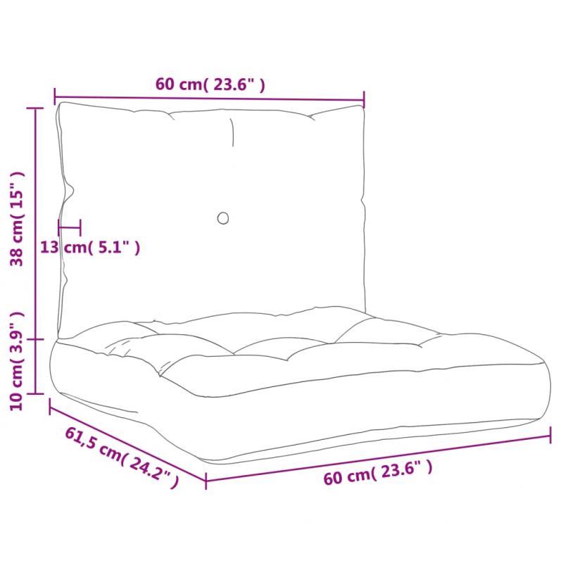 Mit diesen bequemen Palettenkissen verleihst du deinem Outdoor-Wohnbereich im Handumdrehen einen neuen Look! Langlebiges Material: Polyester ist ein synthetisches Material, das für seine hohe UV-Beständigkeit und seine Reißfestigkeit bekannt ist. Polyester ist wasserfest, was es zur perfekten Wahl für feuchte oder regnerische Bedingungen macht. Es lässt sich auch einfach reinigen.Weiche Füllung: Das Outdoor-Kissen ist mit Hohlfasern gefüllt, die für einen besonders weichen und optimalen Sitzkomfort sorgen. Das Kissen nimmt nach jedem Gebrauch seine ursprüngliche Form wieder an.Vielfältig einsetzbar: Das Kissen eignet sich für den Einsatz im Freien, z. B. für Gartenmöbel, aber auch in Innenräumen als Sitzkissen für Hocker und Sofa. Außerdem ist es eine schöne Dekoration, die deinem Zuhause einen frischen Look verleiht. Gut zu wissen:Das Produkt wird unter Vakuum verpackt und braucht daher einige Zeit, um sich auszudehnen und seine ursprüngliche Form wieder anzunehmen.