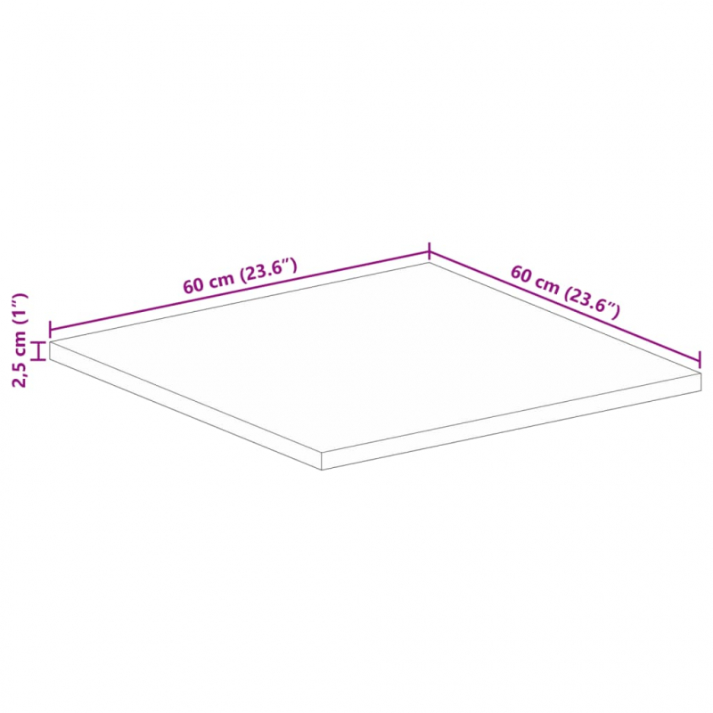 Tischplatte 60x60x2,5 cm Quadratisch Raues Massivholz Mango